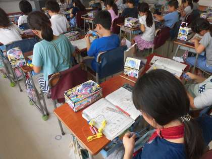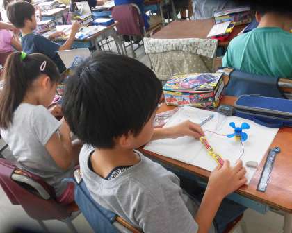 4年生の理科の授業の様子です。今日は電池のつなぎ方の学習をしていました。直列のつなぎ方を振り返ると次は並列の学習です。電池を実際に並べて実験をしていました。ノートをていねいにとっていることにも感心しました。