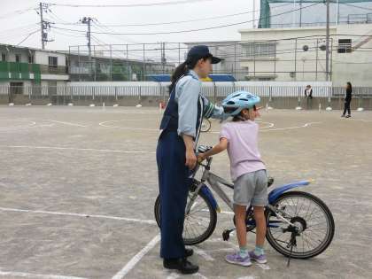 7月5日、5時間目に3年生の「自転車教室」が行われました。PTA校外委員の皆様、北沢警察署の皆様のご協力のもと実施できました。一人一人、ヘルメットをかぶり、自転車の乗り方やルールについて勉強しました。校庭に用意された横断歩道や信号機などを使って、交通ルールを具体的に学ぶことができました。今日の勉強を生かし、これからも安全な自転車の乗り方を目指してほしいと思います。