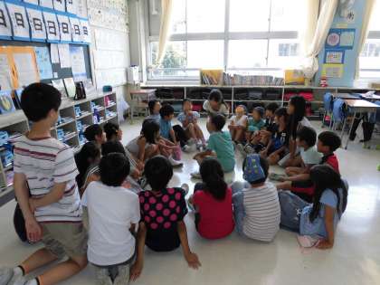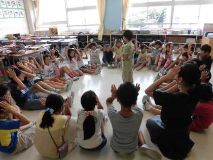 遊びは高学年がリードします。優しい高学年の姿をたくさんの教室で見ることができました。