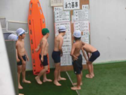 3・4年生がプールに入りました。今日は、検定です。みんな自分の目標に向かって一生懸命に泳いでいました。自分の挑戦する級を友達と確かめている子供たちの姿もありました。