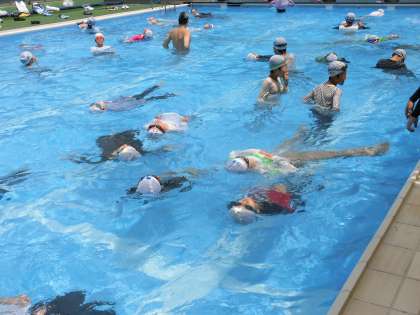 いつも楽しくプールの時間を過ごしている子供たちですが、今日は洋服やくつが子供たちの泳ぎを妨げています。こうした状況の中、泳ぎずらさや浮きずらさを身をもって体験した子供たち。水の楽しさと恐ろしさを感じていました。
