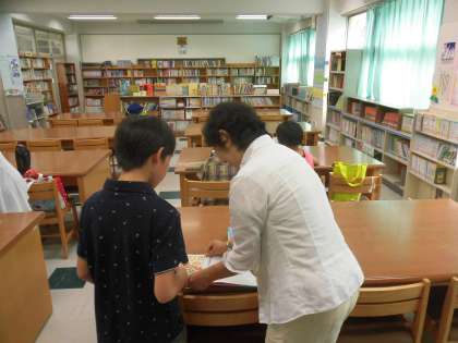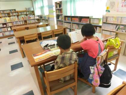 夏休みを利用して、3日間、学校図書館開放を行います。朝から読書に親しむ子供もいます。図書委員の5・6年生も本の修理を行いました。今日は、学校支援を行ってくださる地域の方や保護者の方も来てくださいました。子供たちの読書の様子を見ていただきながら、古くなった本の修理などのご支援をいただきました。学校に対してのご協力、ありがとうございます。地域の盆踊り、ラジオ体操、そして図書館支援など、学校はほんとうにたくさんの皆様に支えられています。いつもありがとうございます。学校図書館開放の次回は、8月24日と8月29日です。