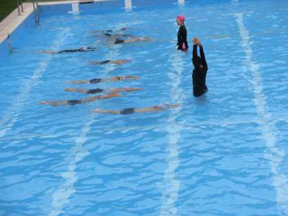 3・4年生の水泳もスタートしました。泳ぎの基本「けのび」の練習をしています。みんなとてもきれいなフォームです。端から端までけのびで泳ぐことができた子もいました。夏季水泳指導では、支援をしてくださる方も加わっています。水の中で子供たちを見守ります。