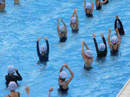 7月28日、平年よりも遅い梅雨明けになりました。昨年に比べると18日遅い梅雨明けだそうです。この後は、夏空が続く日が多くなると予報が出ています。久しぶりの青空の中、プールでは子供たちの元気な姿でいっぱいでした。