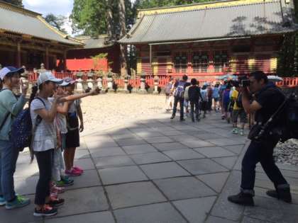 > 案内の方から日光東照宮について詳しく教えていただきました。写真もたくさん撮っていただきました。