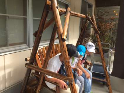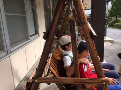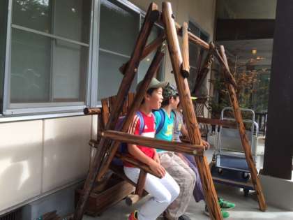 5分前行動がしっかり身についている子供たち。出発前に少し時間があったので、宿の手作りブランコで楽しい時間を送りました。