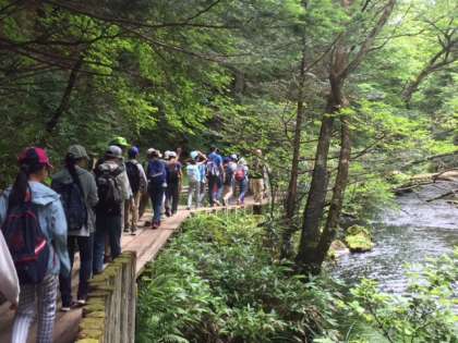 自然いっぱいの中のハイキングを楽しんでいます。