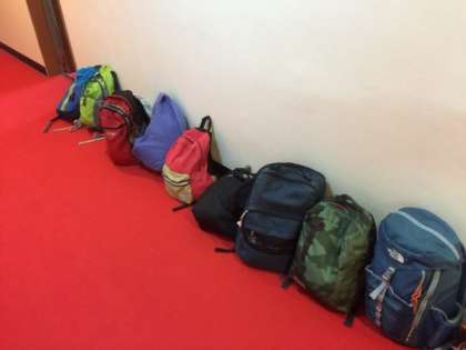 8時の出発に向けてお世話になった部屋の整理整頓を行いました。荷物も自分でまとめます。大きなリュックも後ろに写っている靴もみんなの心のようにそろっています。