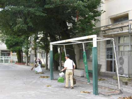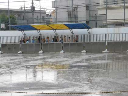 昨日は台風のために中止になった水泳指導。校庭には落ち葉がたくさん。学校主事が落ち葉の掃き掃除をして環境を整えました。第3回目の水泳指導は5・6年生です。一生懸命に泳ぎをがんばろうという意気込みあふれた子供たちが集まりました。中には、1・2年生のお世話をする水泳部の子供たちの姿もあり、第1回目に引き続きの参加です。こんな意欲あふれる子供たちがプールに入り練習をはじめると、雨が降ってきました。不安定な天気が予想される中、雨の降りのが強くなったため第3回目は途中で中止となりました。終了時刻の12時30分まで図書室で待機となりました。明日は夏らしく晴れてほしいと願っています。