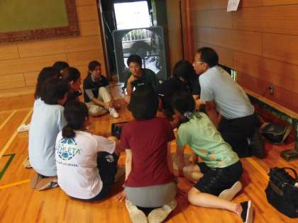 8月29日、近隣の小学校で構成する2ブロックの教員が代沢小学校に集合し、体育実研修会を開催しました。2ブロックは、代沢小学校・松沢小学校・松原小学校・北沢小学校・代田小学校・下北沢小学校・池之上小学校の7校で構成されています。今日は「フラッグフットボール」を教材にして研修を深めました。この「フラッグフットボール」は運動技術だけでなく、チームの作戦が勝利のカギを握ります。各校、独自の作戦を立て、「フラッグフットボール」の特性を生かした楽しみ方を研究しました。どのチームも熱の入った接戦となりました。
