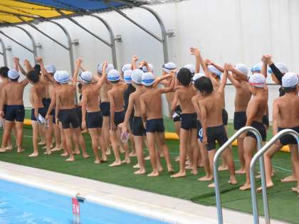 2学期の水泳指導が始まりました。残暑が続くころですが2学期の水泳指導は9月16日までと短い期間になります。お天気に恵まれて充実した水泳指導ができることを願っています。学校の水泳指導は、まず安全第一です。はじまりと終わりには「バディ」の確認を行います。子供たちは、大きな声で元気よく「1」「2」「3」・・・と声を合わせて人数確認をします。今日も友達と気持ちを合わせて、上手に「バディ」確認を行っていました。