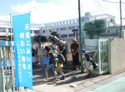 9月1日の始業式の日からからあいさつ運動が行われています。このあいさつ週間の期間中、青少年代沢地区委員会の皆様と保護者の皆様にご協力いただき、あいさつを盛り上げてくださっています。代表委員会の子供たちも参加して、今日もあいさつの輪が大きく広がりました。