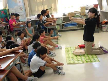 9月6日、9月のすくすくタイムを実施しました。各学年がテーマを設け、計画的にすくすくタイムを実施することで、子供たちの心と体の健やかな成長を育成していきます。6年生は、救急の日を間近に控え、「命を助けるために大切なこと」を学びました。DVDの視聴や養護教諭からの心肺蘇生法のデモンストレーションにより、命を助けるために私たちができることを考えました。