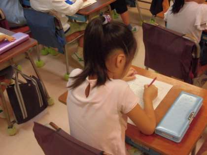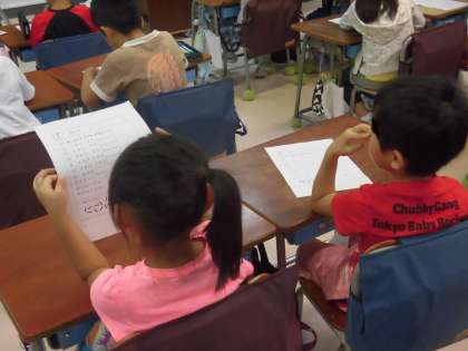 池之上小学校では、朝の時間(8時25分から8時35分)の10分間を活用して様々な取り組みを継続的に実施しています。読書活動、すくすくタイム、音楽朝会、集会などの活動です。今年度からは、「ベーシックタイム」を加え、基礎・基本を図る取り組みを加行っています。。教材として、東京都が作成した「ベーシックドリル」や学校で使用している「繰り返し計算ドリル」などを活用しています。今日はその「ベーシックタイム」の日でした。写真は1年生の様子です。みんな真剣にがんばっていました。