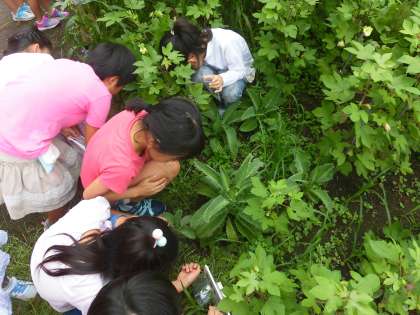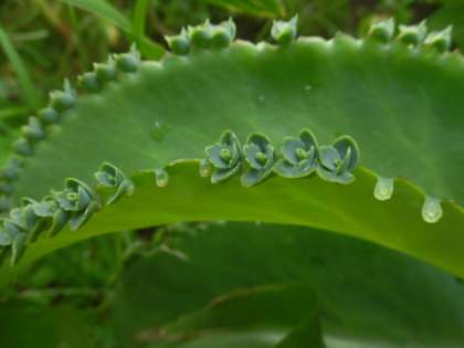 子宝ベンケイソウに夢中になっている子もたくさんいます。葉っぱのふちに生まれたかわいい赤ちゃん葉っぱ。この葉っぱが少し成長すると自然に土に落ちていきます。この落ちた葉っぱの赤ちゃんを拾います。拾った葉っぱをやさしく持ち帰る子供たち。自分でも育ててみたいなという気持ちを抱いたようです。