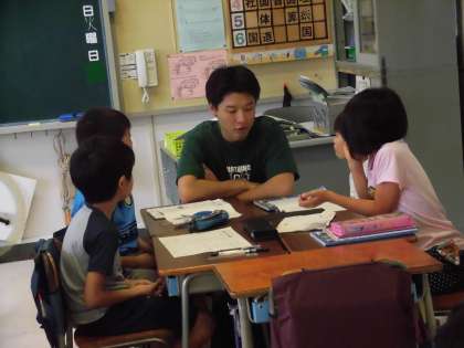 3年生の社会の様子です。1週間の買い物調べを行った結果について、友達と話し合う活動です。この話し合う活動は、池之上小学校で大切にしている学習の一つです。友達と話し合うことで、考えを広げたり深めたり、一つに絞っていったりします。先生のアドバイスを受けながらがんばっていました。