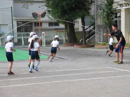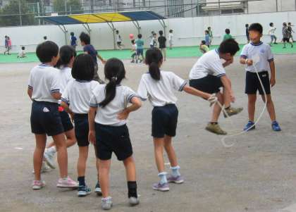 3年生もがんばっています。3枚目の写真は昼休みの様子。体育朝会をきっかけいにクラスの友達同士でなかよく練習に励んでいました。「もう少し前に出るといいよ」「今度のクラスはチームワークが抜群だ」「400回に挑戦しよう」など、声もかけ合っていました。4年生は、午前8時に教育センター移動教室に出かけたため、体育朝会には参加しませんでした。練習の様子など、またご紹介したいと思っています。