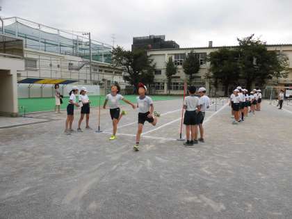 スタート合図やタイム記録も自分たちで行います。自分の記録に一喜一憂する子供たち。一生懸命さのあらわれです。友達への励ましも飛び交いました。