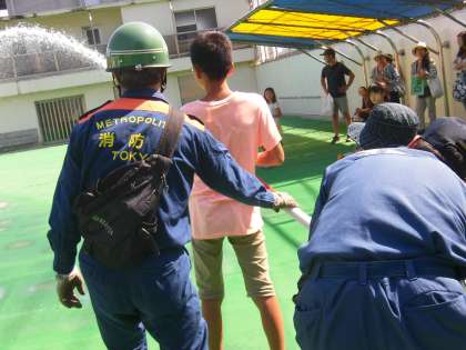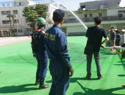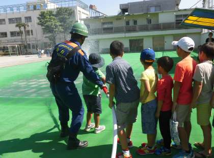放水訓練の様子です。子供たちも大活躍でした。