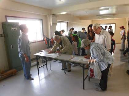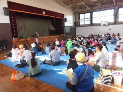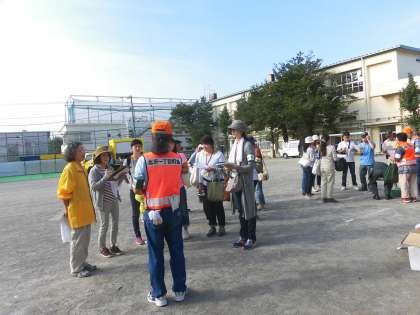 10月2日、池之上小学校校庭で避難所運営訓練が開催されました。スタッフの皆様には朝早くからお集まりいただき訓練の進行に関わっていただきました。世田谷消防署、消防団、町会、商店会、PTA、おやじの会、行政の皆様、そのほか多くの関係の皆様の連携で、災害時に避難所を開設し、かけがえのない地域の皆様の命を守る訓練です。受付の実地訓練を行った後に、避難所運営委員会委員長様のごあいさつ、そして訓練のスタートです。