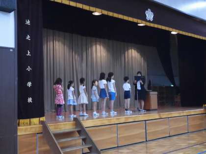 10月3日の全校朝会で、すてきな絵を描いた子供たちの表彰式を行いました。今回は二つのコンクール、「歯と口の健康週間 図画・ポスターコンクール」と「はたらく消防写生コンクール」で優秀な成績をおさめた子供たちの表彰です。「歯と口の健康週間のポスター」は写真にして玄関に掲示しました。さっそくたくさんの子供たちが、感心しなら友達の絵を鑑賞し、がんばりをたたえ合っていました。