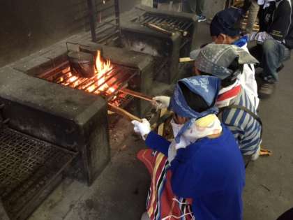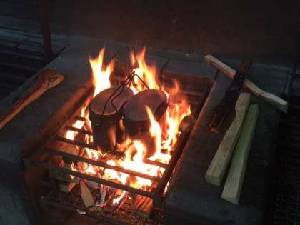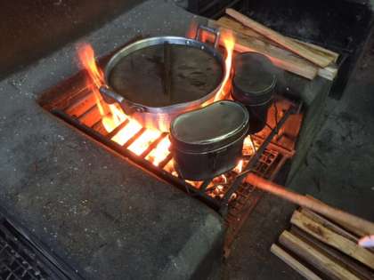 火の番をする子どたち。ご飯を作るのは大変です。でも、子どたちの楽しそうな声が響いています。