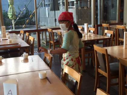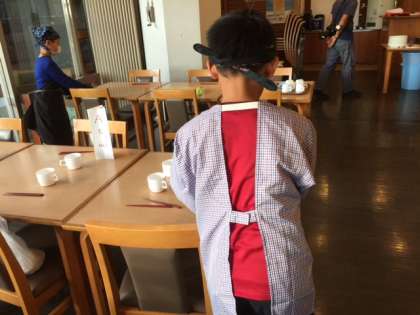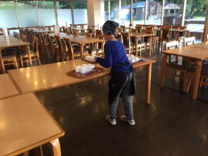 キャンプファイヤーのリハーサルが行われる時間帯に、食事係はみんなの食事の準備をします。テキパキとした動きがすばらしいです。