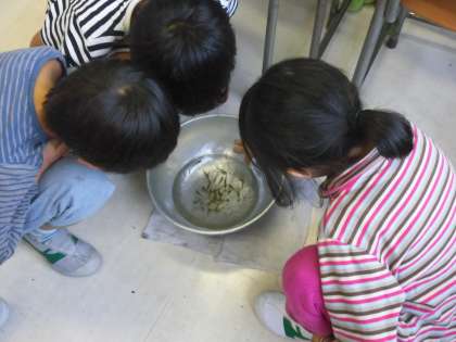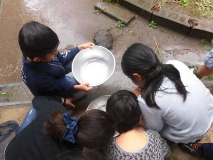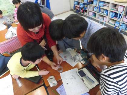 10月17日、ゲストティーチャーをお迎えして3年生が「ヤゴからビオトープの環境を知ろう」という学習を行いました。最初に、ビオトープの生き物探しです。