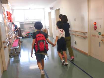 楽しい時間もあっという間に過ぎ、お別れの時を迎えました。教室から玄関まで、共に楽しんだ仲間として手をつないで向かう子供たちの姿がありました。お互いに手を振り合って「さよなら」のあいさつをしました。交流活動は12月に2回目を行います。今度は池之上小学校の子供たちが一緒に遊ぶ活動を考えます。「12月にまた会おうね」「今日は楽しかったよ」「ありがとう」と、たくさんの声が聞こえました。