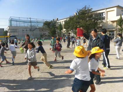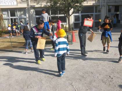 10月の集会が行われました。集会委員会のすてきなアイディアで、ハロウィンにちなんだ「宝探しゲーム」です。朝早くから宝のカードを隠す準備もしていました。ルールの説明もしっかりできました。後期委員会に入ってからは5年生が中心になってリードし、6年生が5年生を支える役を担います。こうした高学年の準備があって、全校の子供たちは楽しい時間を過ごすことができました。夢中になってカードを探しています。カードを見つけるとうれしそうに担任にカードを届けます。