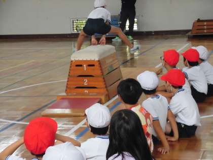 友達のよさを伝え合いました。お手本となって跳んだ友達への大きな拍手も自然に起こりました。みんなで安全に、互いが高まり合えるよう協力して活動できた体育の時間でした。3年生のよさがたくさん見られました。