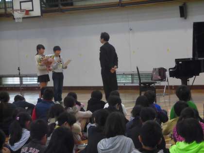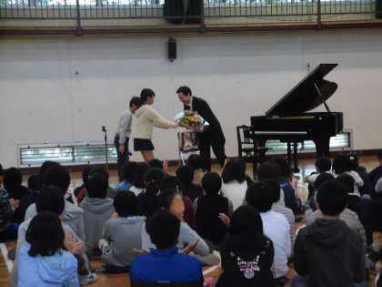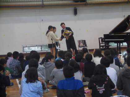 コンサートが終わると、子供たちは、竹内先生に感謝の気持ちを伝えました。音楽の豊かさを感じたこと、ピアノの音色の美しさに触れることができたことへの感謝の気持ちです。代表の子供からの言葉を受け、会場から大きな感謝の拍手が沸き起こりました。