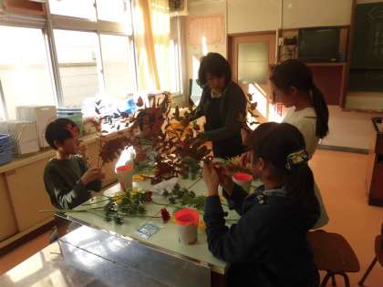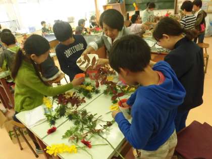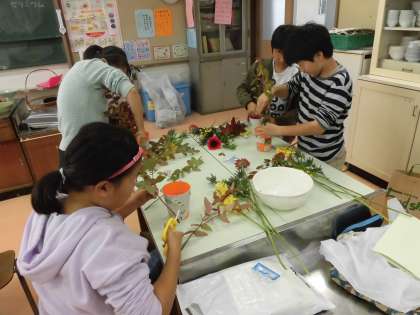 子供たちが花を生ける一生懸命な様子です。お花の先生からもたくさんの助言をしていただきました。