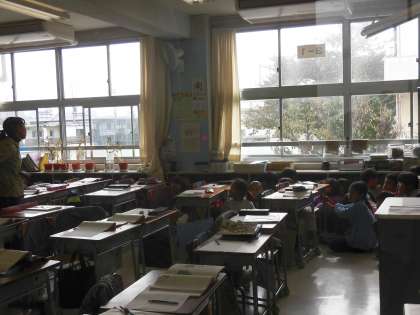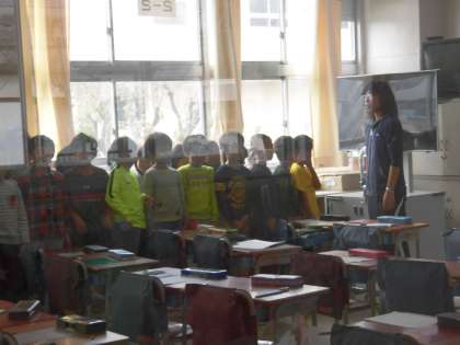 11月の避難訓練として不審者対応訓練を行いました。学校内に不審者が侵入したことを想定した訓練です。校内放送がかかると、子供たちは先生の指示に従い、教室に端に小さく一つにまとまります。どのクラスも真剣に、そしてしっかり行動できたようです。