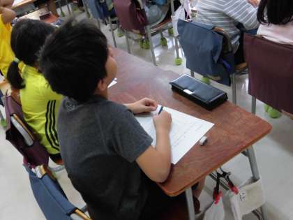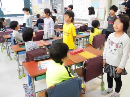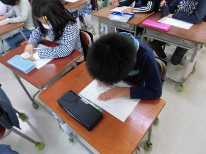 今日の学習を生かして、授業のまとめとして詩「ふるさと」を朗誦しました。発表する子供たちは大きな声で、気持ちを込めて、とても立派な態度です。聞き手の子供も発表者をしっかり見て、友達のいいところをたくさん見つけました。最後に今日の学習の振り返りです。ていねいに感想を書く子、先生がまとめた黒板の学習内容をしっかり確認しながら自分の振り返りに生かしていく子・・・みんな一生懸命に授業に参加していました。