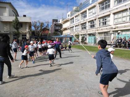11月9日、第1回ながなわ大会が開催されました。5分間という凝縮された時間の中に子供たちの努力がいっぱい詰まった大会になりました。各クラスが目標をつくり、回数更新とチームワーク力の高まりを目指して挑戦しました。今年入学した1年生も毎日、一生懸命に練習を重ねてきました。練習のたびに、6年生が回し手の応援に駆けつけました。日を追うごとに上達する1年生。いつも笑顔いっぱいでした。日を追うごとに回し手としての技術が向上していった6年生。1年生の跳ぶタイミングに合わせて、速く回したりゆっくり回したり、大きく回したりと状況把握も抜群です。クラスの協力、他の学年の協力・・・たくさんの協力が5分間からいっぱいあふれました。