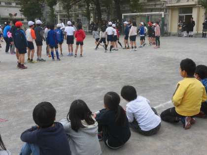 昨日、大会を終えた学年の子供たちは、今日は力強い応援団として活躍しました。