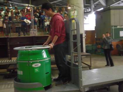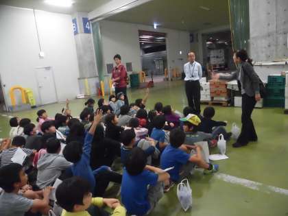 世田谷市場では、様々な機器の説明をしていただきました。先生も実際に乗ってみました。子供たちが声援が沸き起こりました。毎日お仕事している方のプロの技も見せていただきました。最後に子供たちからの質問です。世田谷市場の学習を深めるにふさわしい質問がたくさん出されました。今日の社会科見学はたくさんの世田谷区のすてき発見ができました。3年生は、いつも元気いっぱいのあいさつとたくさんのことを学ぼうとする意欲があふれる子供たちでした。