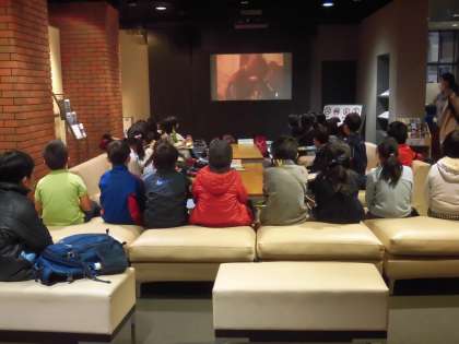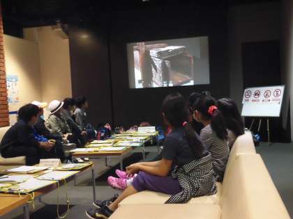 午後の見学場所は「東京都水道歴史館」です。ここでは、クラスごとにたくさんの学習をしました。最初は映像による水道の歴史についての学習です。