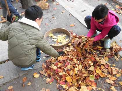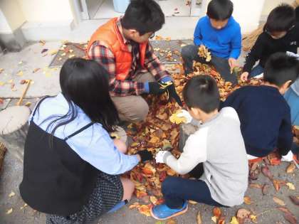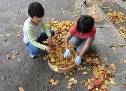 北風が寒い朝でしたが、熱心に活動している子供たちがたくさんいます。なかよし班で行う落ち葉掃き活動、明日もまた続きます。