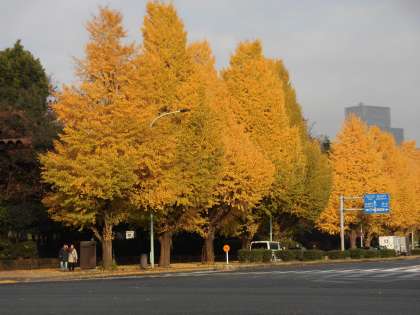 国会議事堂の前でみんなで記念写真を撮りました。季節はすっかり晩秋です。国会議事堂の周りのイチョウも美しく色づいていました。