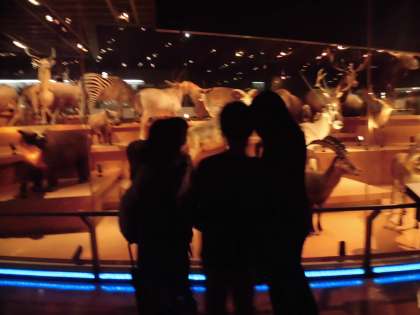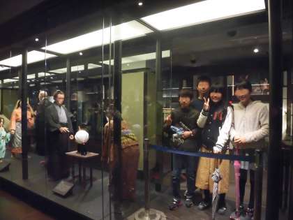 最初の見学場所、国立科学博物館ではグループごとに見学しました。どこから見学するかみんなで話し合って決めました。地球館と日本館を中心にまわりました。日本館では、歴史ごとに当時の様子を表す人形が展示されいて、現代コーナーは来館者が演じる仕組みにになっています。子供たちはさっそく現代人のモデルになり、ポーズをとっていました。