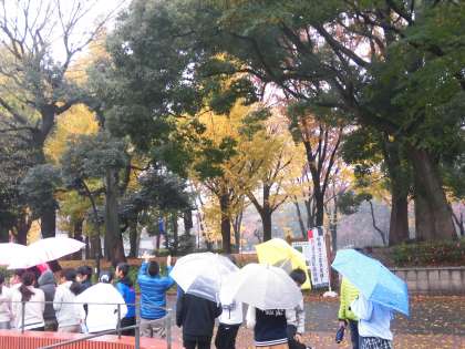 12月になりました。12月1日、6年生は社会科見学に出かけました。雨の中の出発です。最初の見学場所である国立科学博物館に着いた時もまだ雨が降っていました。近くの広場では紅葉が美しく広がっていました。それにしても都会の東京にも大きなイチョウの木がたくさんあります。見事に黄金色に色づいています。後ほど紹介しますが、江戸東京博物館でも国会でも大イチョウを見ることができました。東京の歴史を感じる1日にもなりました。