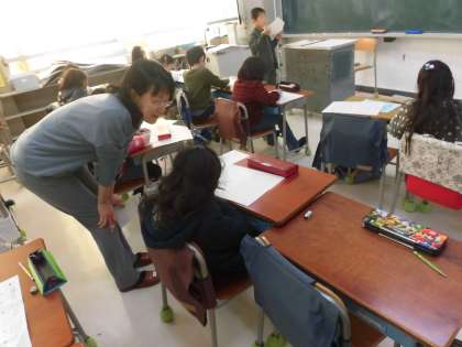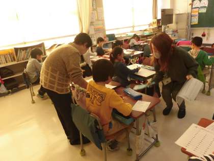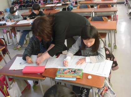 九九のプリントを行ったら、自分で確かめを行います。確かめができたかどうか、地域の皆様が確認してくださいます。一人一人の理解に合わせて、ていねいにアドバイスもしてくださいました。来週もまたスタディルームを開く予定です。