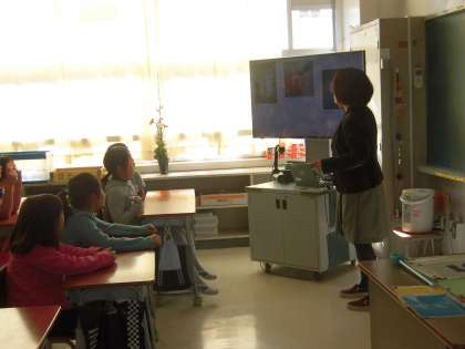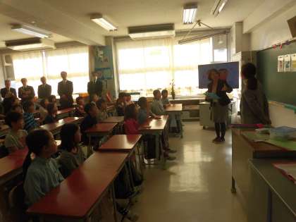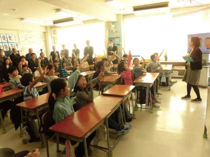 12月8日、3年生の英語活動を行いました。この日は、那須塩原市から30名ほどの先生方が教育視察で池之上小学校を訪問されました。那須塩原市では英語活動と小中9年教育に力を入れているそうです。子供たちは、はつらつと英語活動に取り組みました。英語担当と担任による指導体制で行いましたが、数字や色や様々な国旗を英語で伝えたり、ゲームをしたりして楽しみました。笑顔がいっぱいです。積極的で一生懸命に勉強する3年生の子供たちを那須塩原市の先生方がほめてくださいました。