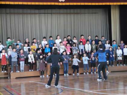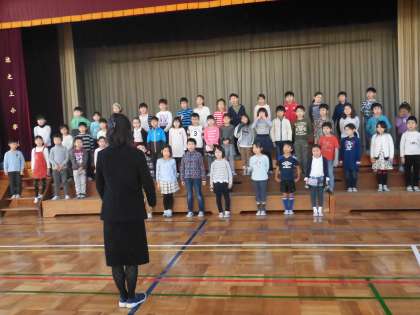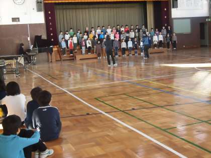 12月の音楽朝会が行われました。今日はクリスマスソングをみんなで歌いました。最初は2年生が4曲の歌を披露しました。これまで練習してきた成果を発揮できるように、朝の練習も行いました。音楽委員会の5・6年生も見守る中でのリハーサルです。本番直前、先生から励ましの言葉をかけていただきました。