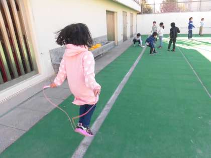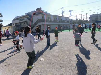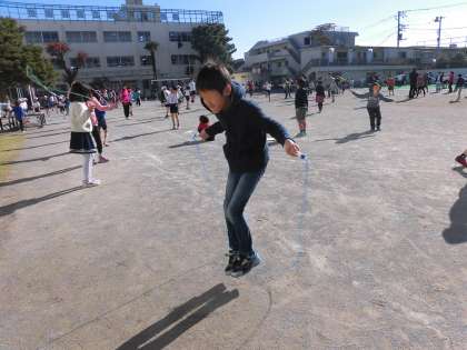12月16日、朝と20分休みに続けてきた「なわとびタイム」が終わりました。音楽がかかると、みんな熱心になわとびの練習をはじめたこの2週間。一生懸命にがんばりました。「先生、見ていてね。できるようになりました。」「数を一緒に数えてください。」「今まではできなかったけど、1回跳べるようになったんです。」「カードがたくさん進みました。」そんなうれしい報告をたくさん聞くことができました。一人一人が一歩一歩歩み続けた2週間になりました。目標はみんな使うけれど、一生懸命に練習した充実感や昨日よりも跳べるようになったことへの満足感をもった子がたくさんいてうれしい気持ちでいっぱいです。今年度からの試み、なかよし班を利用したなわとび練習では、高学年のお兄さん、お姉さんが実によく小さな子へ関わっていました。なわとびタイムは終わりますが、これからも様々なことにチャレンジする池之上の子供たちであってほしいと願っています。