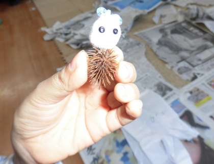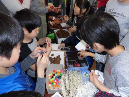 ビオトープ活動で収穫した「オオオナモミ」や「じゅずだま」でかわいい小物作りにも挑戦しました。
