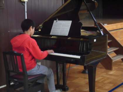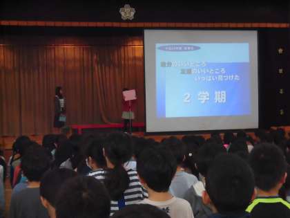 12月22日、2学期が終了する日を迎えました。写真は終業式の様子です。先生とみんなでしっかり礼をして式が始まりました。代表の子供たちが2学期にがんばったことや2学期の反省から次にがんばりたいことの発表がありました。とても立派な代表の言葉でした。ピアノの演奏もがんばりました。いつもたくさんのがんばりであふれる池之上小学校です。