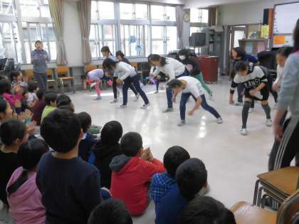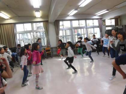 ダンス・ミュージッククラブの様子です。ダンスを見せてもらうだけでなく3年生も一緒に踊りました。音楽室に活気がみなぎりました。